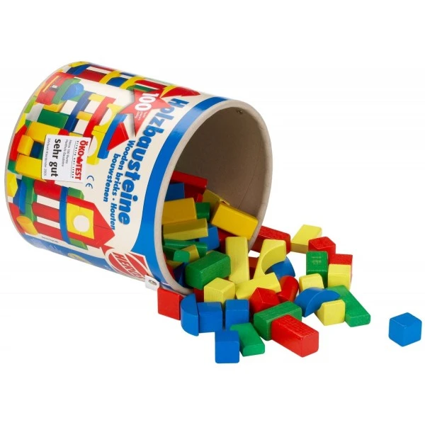 Set bestaat uit 100 bouwstenen verpakt in handige trommel.