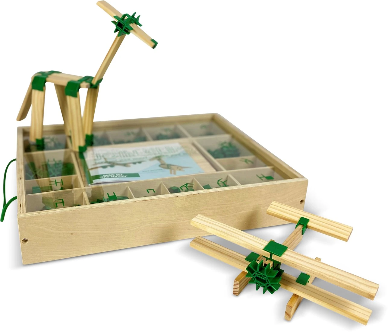 Deze JOIN CLIPS home editie bevat 400 verbinding clips in 15 diverse uitvoeringen, 80 mooi afgewerkte houten (bouw)plankjes. Een instructie boekje met 4 bouwvoorbeelden, allemaal opgeborgen in een luxe houten kist met vakken.Combineer de Join Clips met je favoriete houten plankjes zoals Kapla en ervaar de enorme uitbreiding van mogelijkheden. Bouw vliegtuigen, dieren, boten en popjes – het kan nu met JOIN CLIPS, en ga er daarna mee spelen.