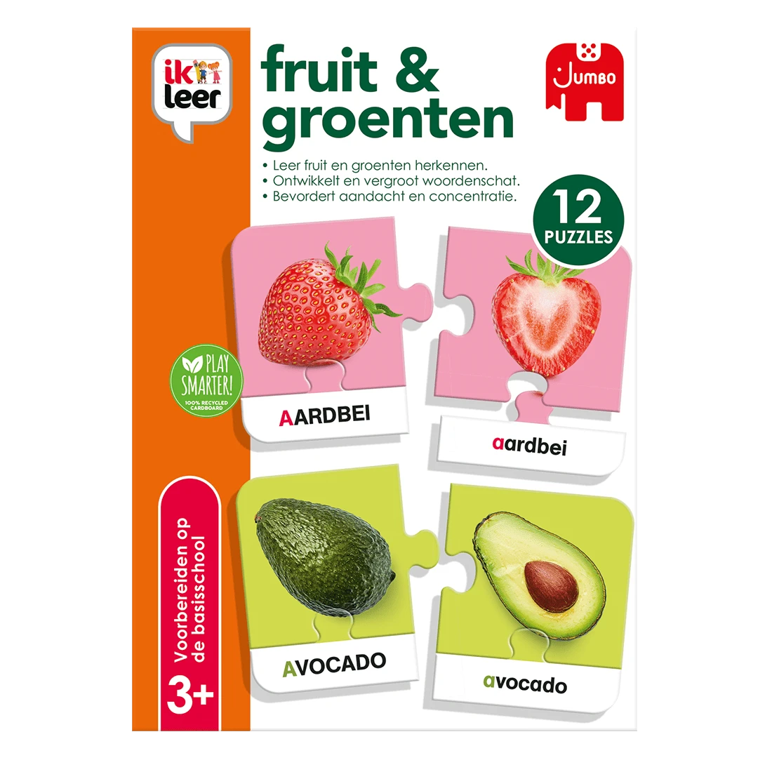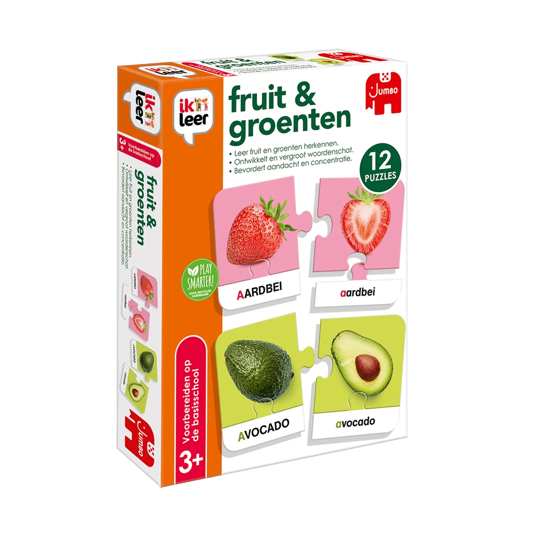 Educatief speelgoed dat kinderen helpt bij het leren en vertrouwd raken met de namen en de externe en interne aspecten van sommige groenten en fruit.