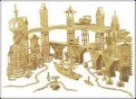 Kapla kist met deksel 280 plankjes met voorbeeldenboek Groen met eenvoudiger te reproduceren constructies worden voorgesteld rond het thema architectuur om de jongste bouwers te inspireren.