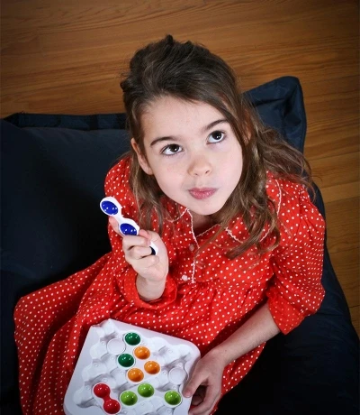 Inhoud: spelbord met 11 kleurige puzzelstukken, spelregels, 60 opdrachten verdeeld over 5 moeilijkheidsgraden, oplossingen.