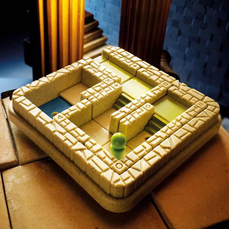 Eén misstap en je eindigt als avondeten voor de krokodillen. Enkel een slimme avonturier kan ontsnappen uit dit vervloekte labyrint. Compact spel.
