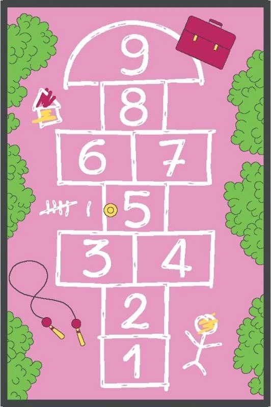 Speciaal voor de meiden deze knalroze hinkelbaan. Gooi een bean bag en hinkel er naar toe.