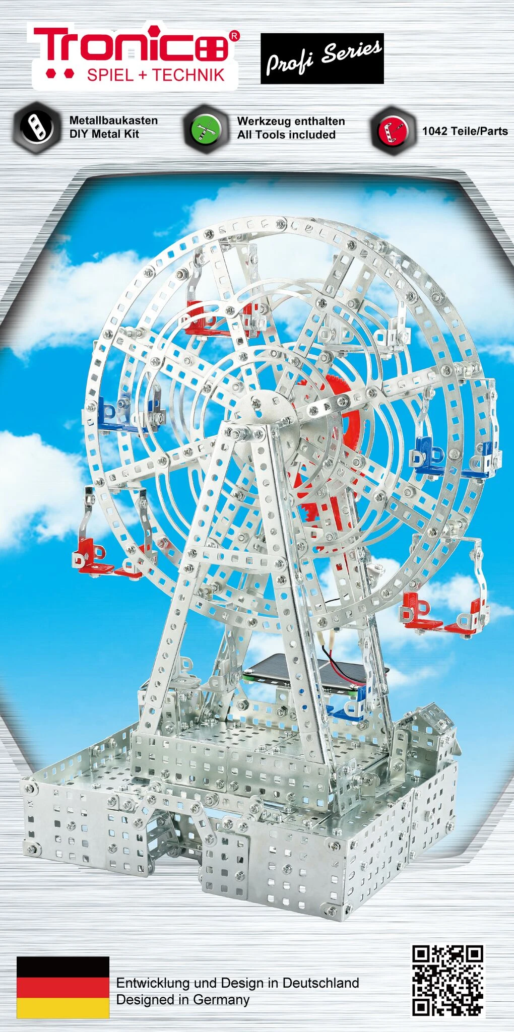 Bouwdoos met 1042 onderdelen uit de Tronico Profi serie. Deze bouwdoos bevat alles om een solar aangedreven Reuzenrad te bouwen.